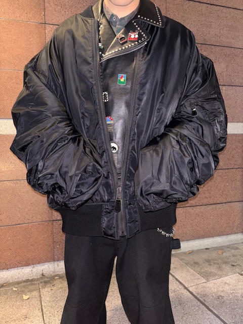 考えてみると一番上に着用するのがセオリーですがここで活躍するのが、ボンバージャケット見て分かる身幅の広さです。