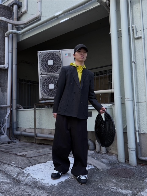 股上の深い太めのパンツと大きめのスニーカーでストリートの要素も入れてみました。