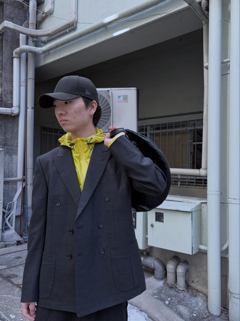 テーラードを羽織ることで本来のOmarの雰囲気に寄せつつも、